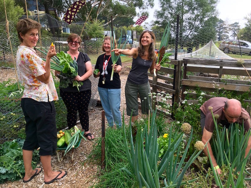 Gardeners meet from 10am every Friday and have a working bee on the first Sunday of the month. They share lunch and produce, and additional produce is shared with the Soul Kitchen, the Food Bank, and the Blue Mountains Food Co-op.
