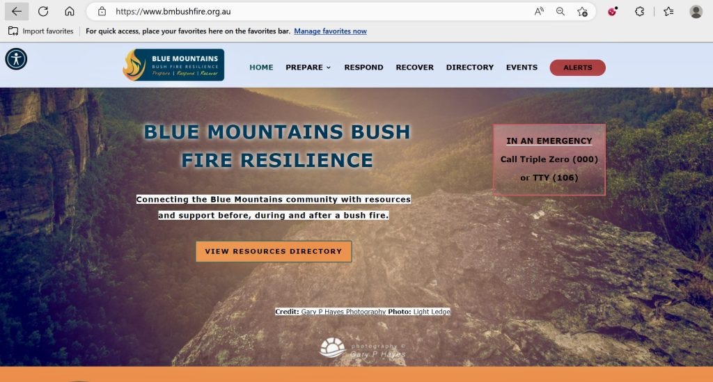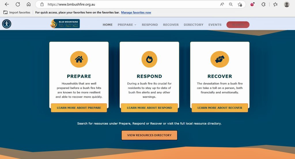 “It’s very difficult to navigate all that information that’s out there. You can be taken off onto a tangent very easily when you go from website link to website link. The whole purpose of the Blue Mountains Bush Fire Resilience website is to create a directory of curated resources. Rather than providing thousands of links, we have selected a smaller set of resources that we think suit our Blue Mountains region best.”