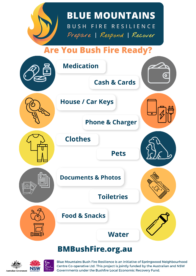 In 2015, Springwood Neighbourhood Community Co-operative partnered with Charles Sturt University, Blue Mountains City Council and Katoomba Neighbourhood Centre to undertake research about vulnerability and resilience in the Blue Mountains. The survey revealed that less than 50% of responders had a bushfire plan.