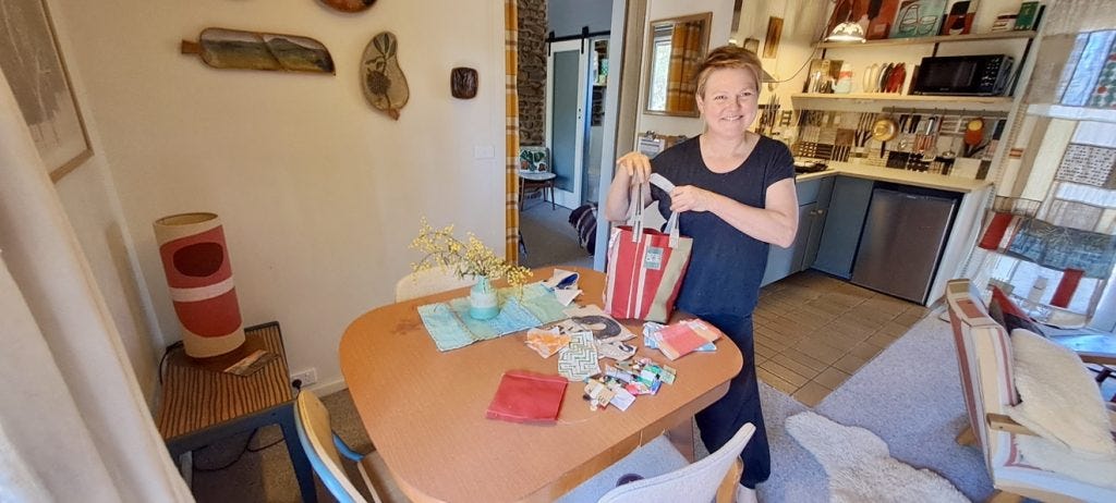The philosophy of Julie’s business is to use every single scrap that she’s ever made in the manufacturing of products.