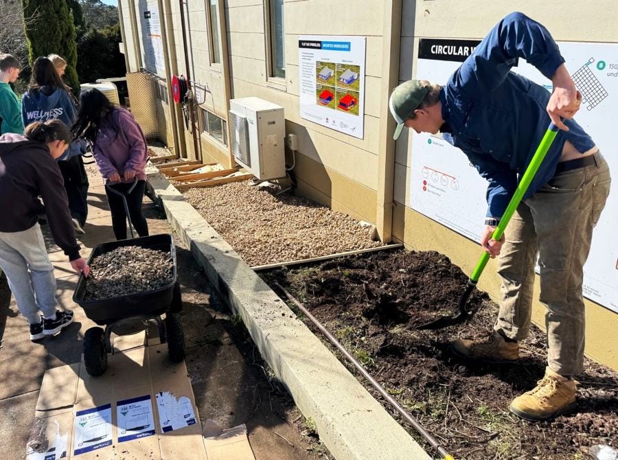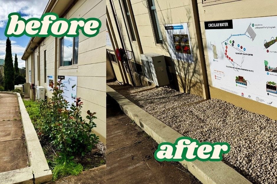 Last term the students helped fireproof the Centre by replacing vegetation adjacent to the building with gravel.