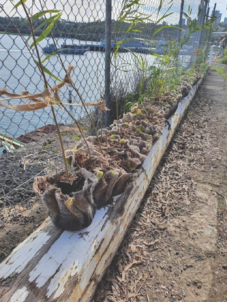 “We have to be mindful of what we do with the art when we’re finished, so rather than just dumping them I wanted to plant them somewhere useful. Lis [Bastian] suggested planting them at Headspace in Katoomba and that made perfect sense to me, as there were young people building a permaculture garden there.