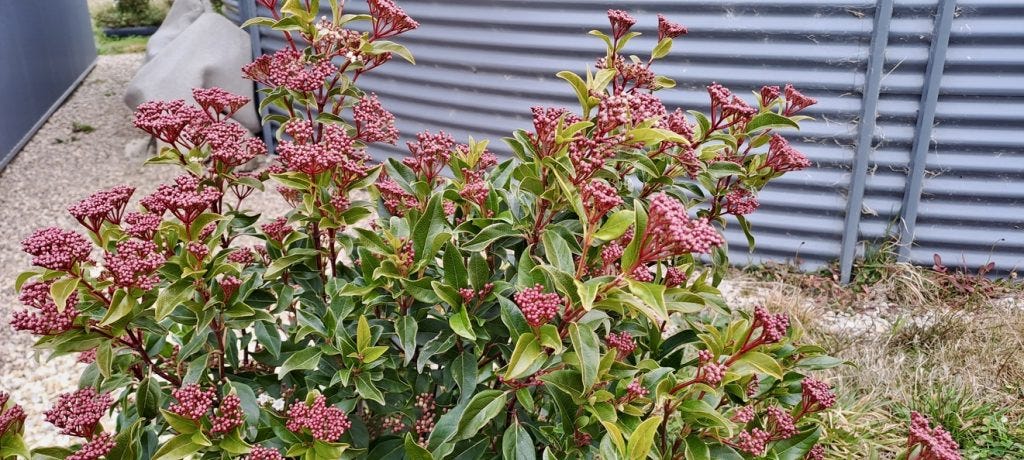 Megan’s home garden incorporates bare earth with a mix of introduced and native flowering ground covers and shrubs, and fruiting trees.