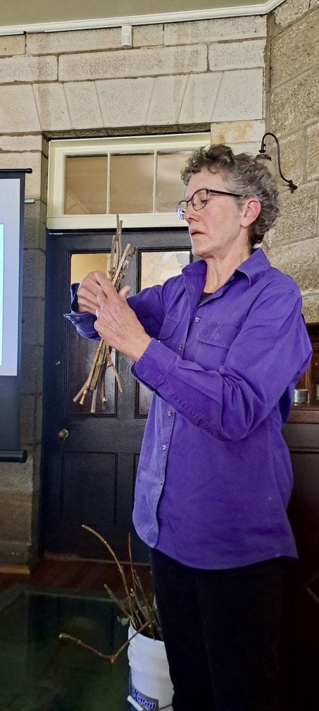 Megan demonstrating how to construct a simple bee hotel from Hydrangea prunings at the Eskbank House Museum presentation.