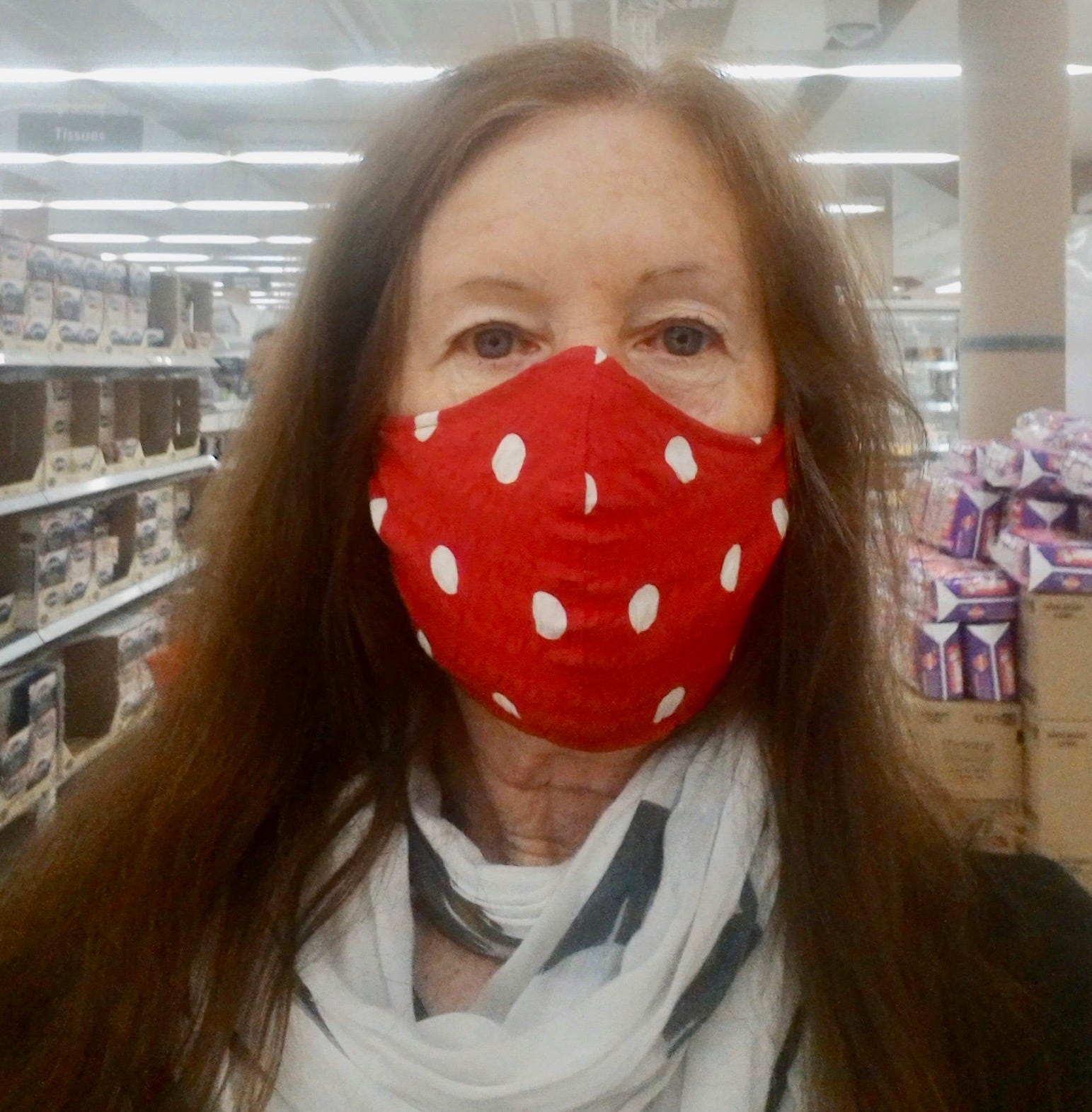 Deidre Ikin wearing a home-made mask while out shopping