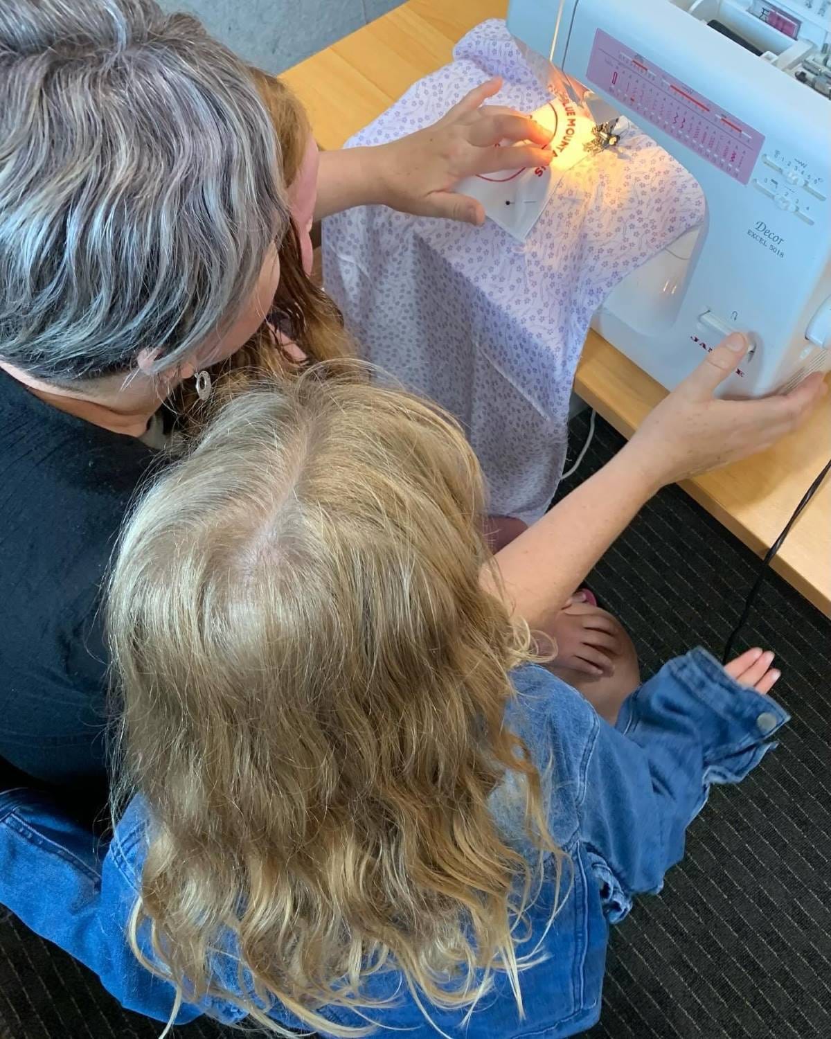 “The kids wanted to learn how to sew, and without a machine at home or a clue myself, I wasn’t sure how to do this,” said Erin, who attends the sewing bees with her young daughters.