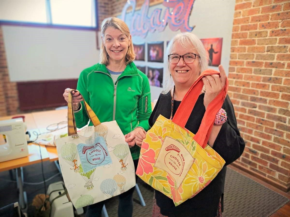 Ever been to the shops and realised you’d left your bags at home? This is usually the moment I find myself walking out the shop doors with every pocket overfilled, and my teeth acting as a third set of fingers, just so that I can avoid the plastic bag that was offered to me. In this world in which it is difficult to make consistently pro-environmental choices, a group of Blue Mountains residents is working hard to make one choice a little bit easier.