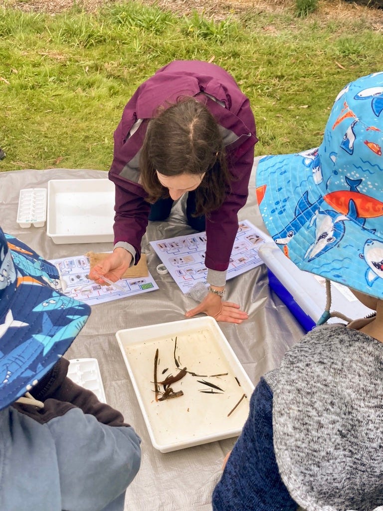 Alice Blackwood wth participants observing waterbugs in samples extracted from Lake Pillans. (Lithgow Transformation Hub)