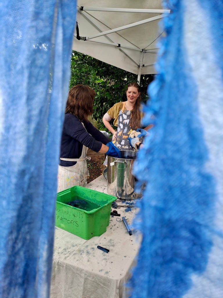 Pip Bishop and Frances Goudie at the indigo dyeing station