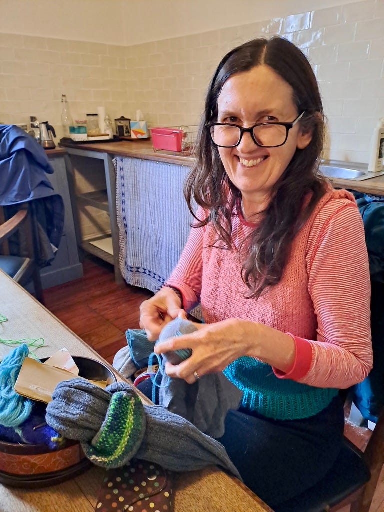 This philosophy was in practice at the mending station inside the Lyttleton cottage where Robyn Moloney sat at the kitchen table from 10am-3pm darning old clothes and passing on this skill to others.