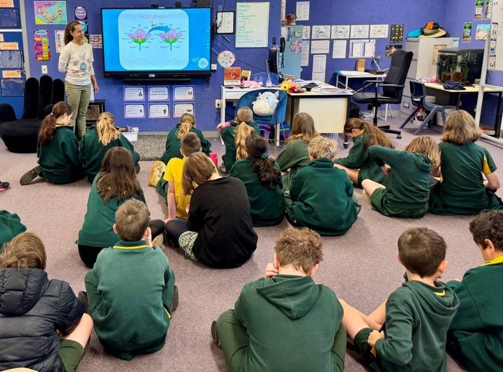 Nicole Lewis, Chief B&B Highway educator, sharing information about pollinators with students at Blackheath Public School. (Photo: Lis Bastian)