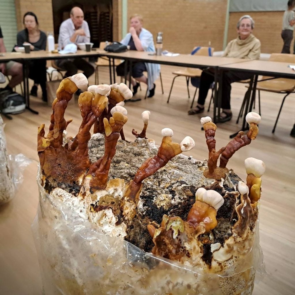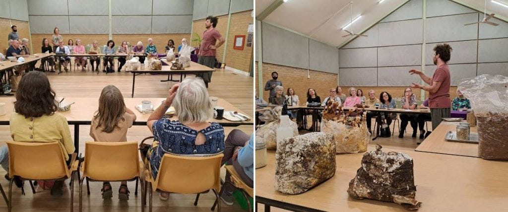 Alex talked to an engaged audience at a Permaculture Blue Mountains event about the process of growing mushrooms.