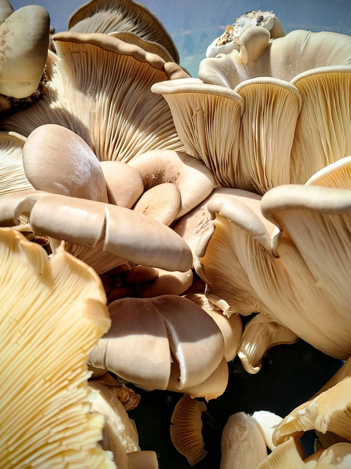 Oyster Mushrooms showing off their gills and frills at Earthrising Mushroom Farm.