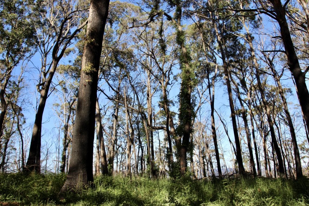 Moderately burnt forest in one of the study sites at the southern end of Blue Mountains National Park in November 2020 (Peter Smith).