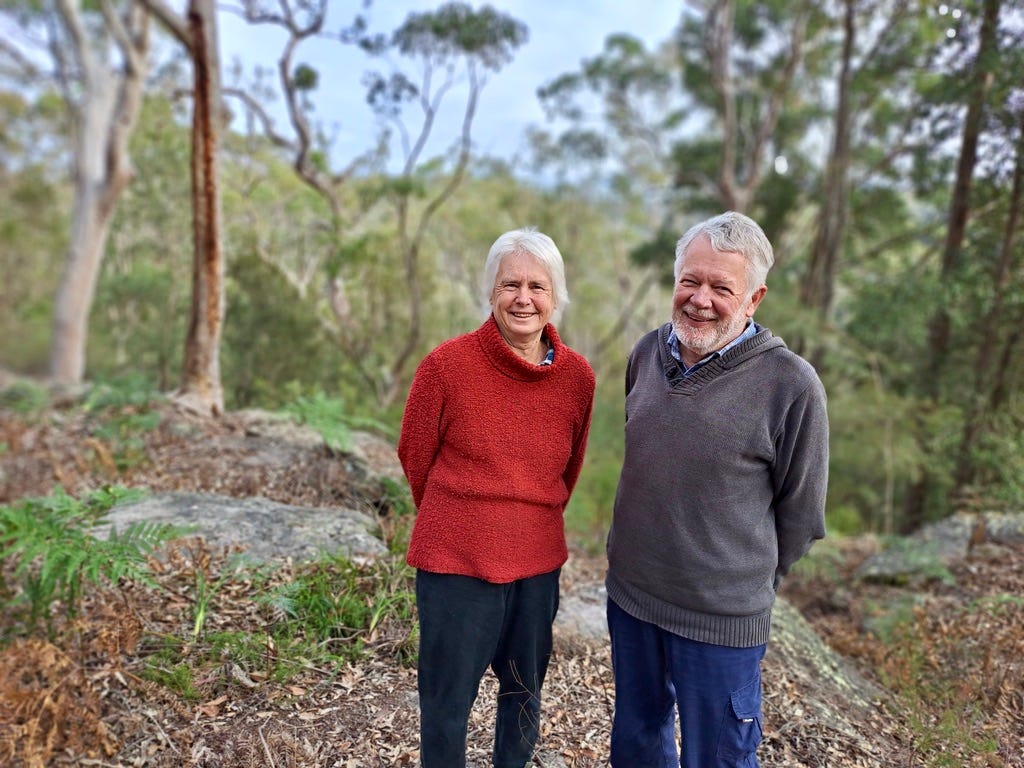 Drs Judy and Peter Smith in national park next to their Blaxland home where they have lived for almost 40 years and raised three children (Julie Nance).