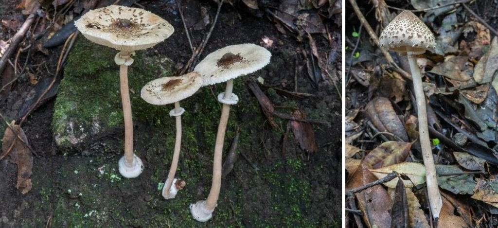 Native edible mushie, Macrolepiota clelandii (the Australian Parasol) thrives in Eucalypt forests but has many toxic lookalikes, Alison says. (Photos: David Noble)