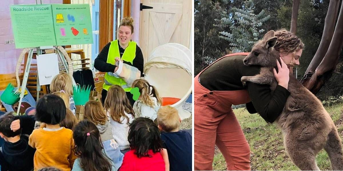 Part of what she teaches is general awareness of the world and how everything is interconnected. Another element is fostering compassion for all creatures. “Climate change is tough for all of us: humans and other animals,” she says. “Sometimes, events like heatwaves mean that animals come closer to people’s homes than they might otherwise. This might be to seek shelter or to access water. It might be because of habitat loss. Being compassionate is so important. If you find a kangaroo eating or drinking in your backyard, that’s what they need right now.”