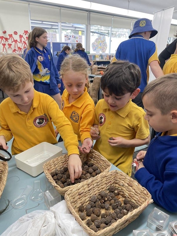 Zorana was busily explaining the structure of the different cockatoo feather types while Anika explained the habitat hollows provided by local organisation, Hollowhog. STEM teacher Samantha was on hand to help children plant native Allocasuarina seeds and small seedlings while providing key insights into Indigenous knowledge around conservation of the Glossy Black Cockatoo.