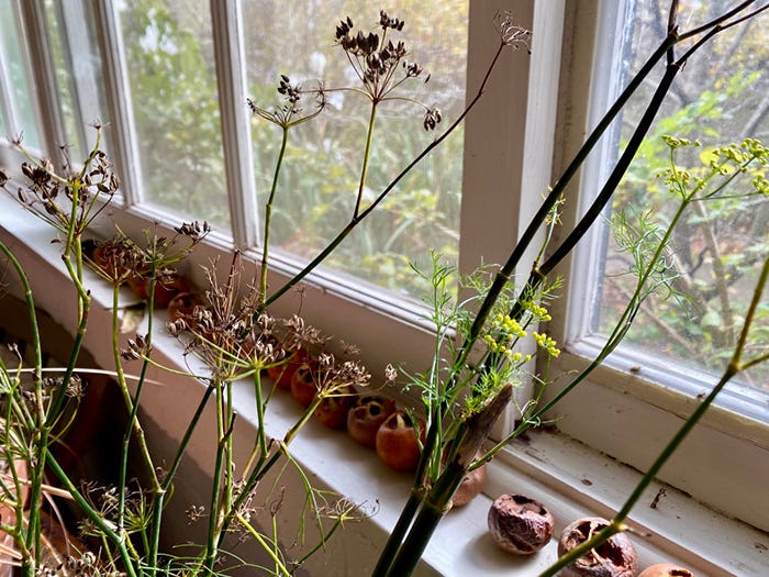 There’s nothing like a warming cuppa when the wind howls and snow threatens. Even better is filling the house with the fragrance of a summer garden. With frost forecast for Monday, I braved the elements in my backyard and harvested large bunches of lemon verbena, lemon balm, mint, sage, and my remaining fennel seeds to ensure I had enough to tide us over winter.