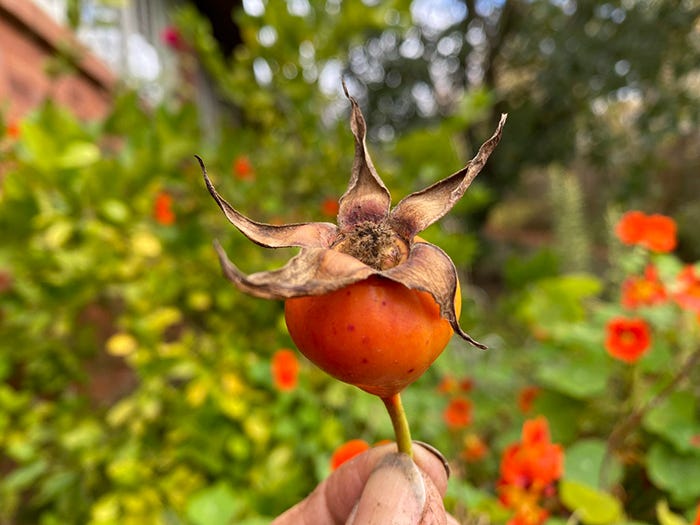 While I was out I couldn’t resist grabbing a rosehip for a cuppa too, but I’ll leave the rest until after the frost when they’ll be riper and sweeter.