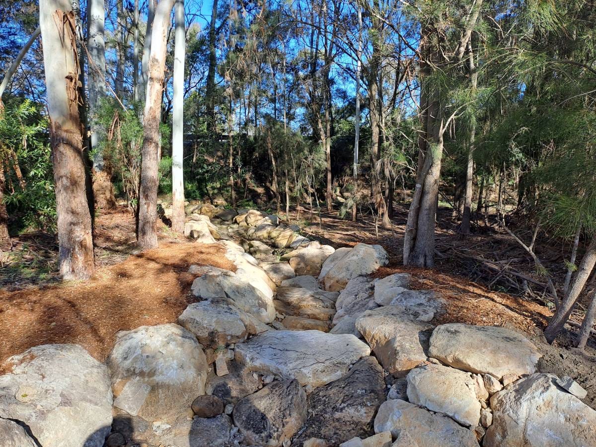 Rock-lined flow paths as part of the Glenbrook Raingardens Project (Photo: Julie Nance)