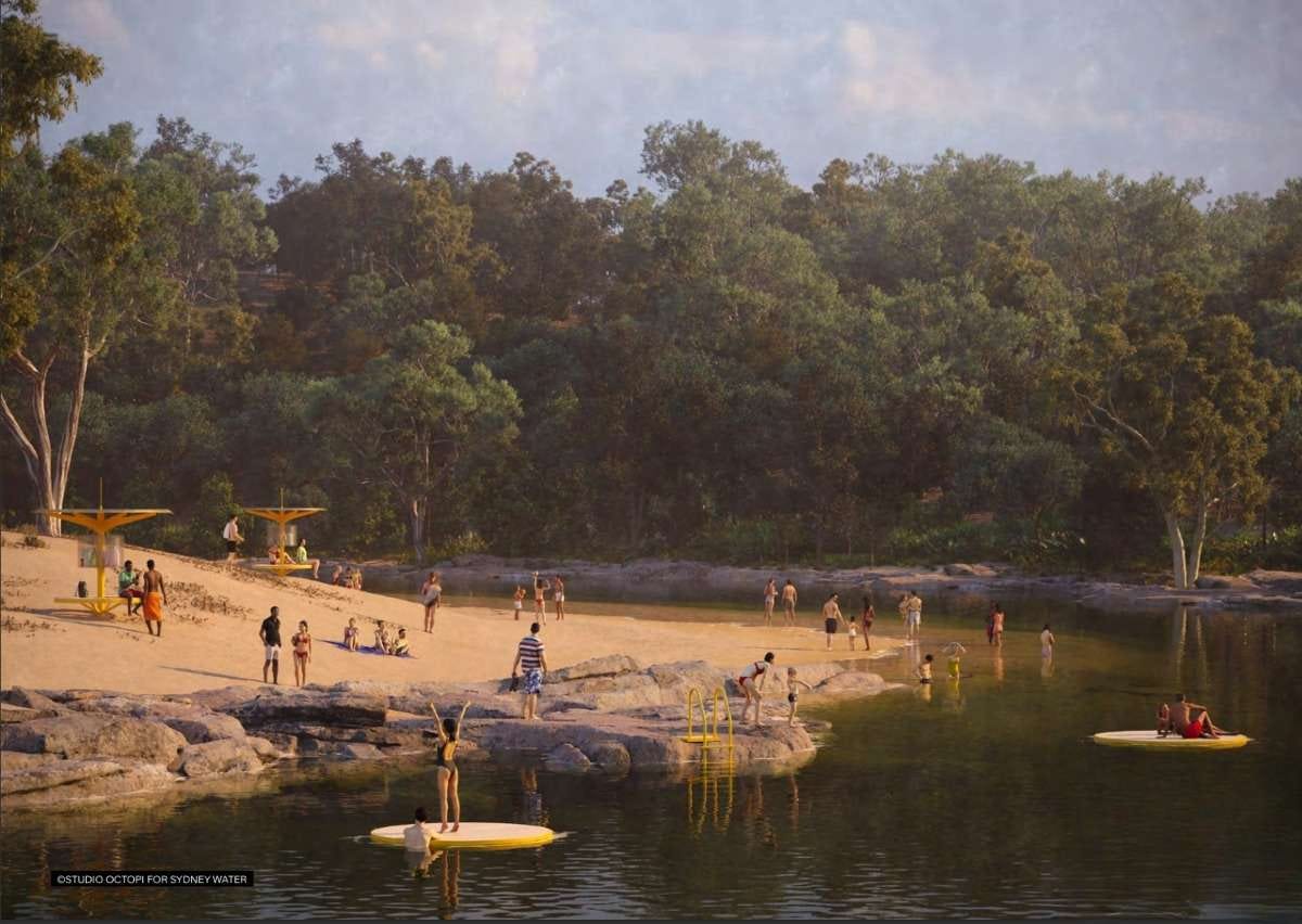 Concept impression of a potential future swimming site. (Image Studio Octopi, supplied by Sydney Water)