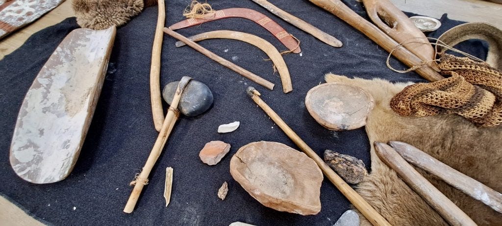 Chris tells us that there is a wealth of information due to the journalling practices of colonial government and military officers and the diaries of colonists and convicts but, alas, recorded through British eyes and assumptions of the day. For example, the narrative of Aboriginal cultures and Indigenous tools as ‘primitive’. Through his storytelling, Chris shows us how the British compared the tools and mechanisms needed to maintain their social structures, with the tools and mechanisms of Aboriginal cultures.