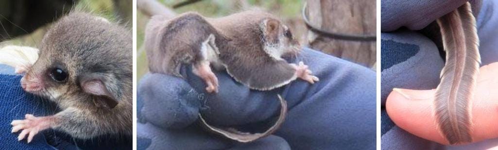 Middle: The beautiful feather tail of the Feathertail Glider