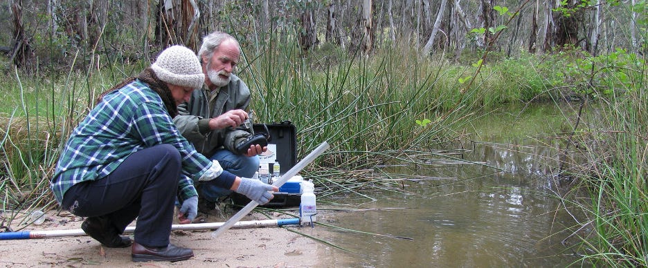 Members of LEG checking water quality as part of their ‘Streamwatch’ Program’ (Photo: LEG)