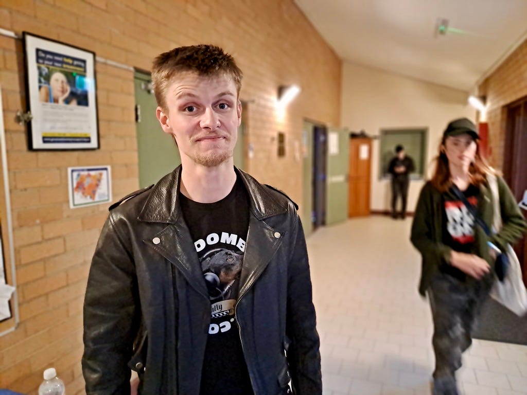 Holly, Bec, Samuel and Peter of Acid Amora owning the stage.