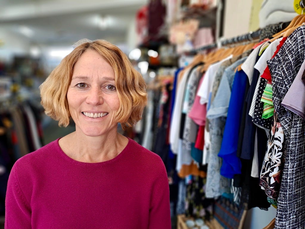 When I visited the Op Shop it was buzzing with customers browsing an eclectic array of pre-loved clothes, knick-knacks, yarn, fabric, toys and electrical goods, all tested and tagged by a local, volunteer electrician.