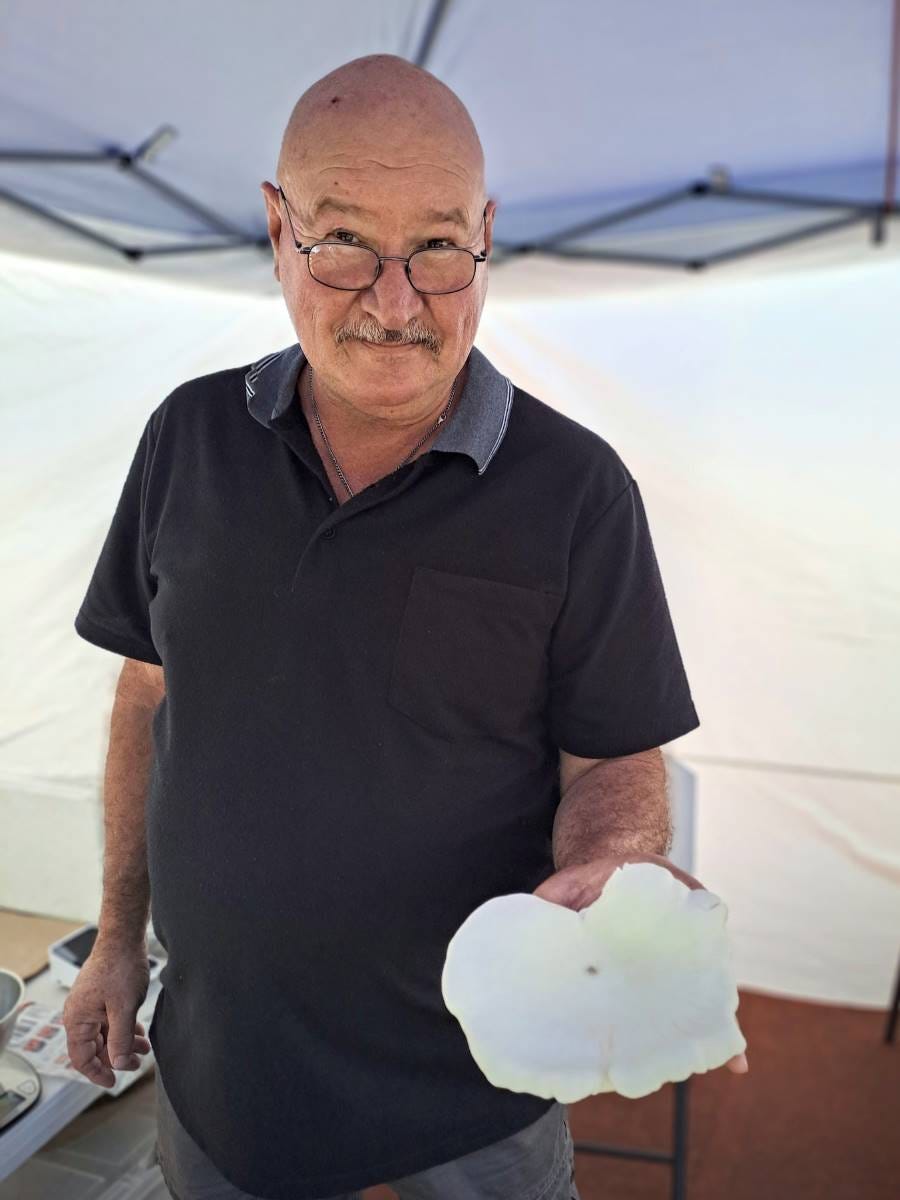 Steven McCulloch with a freshly picked oyster mushroom.