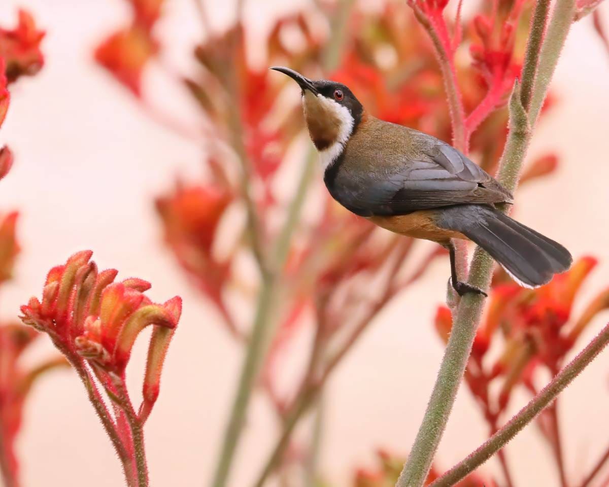 Eastern Spinebills are frequent visitors to our garden and every time I see one, I get a little buzz because they are feeding from something I planted. I’m not the world’s best gardener but I’m learning. Seeing birds come to use our birdbaths and feed from our plants is all the encouragement I need.