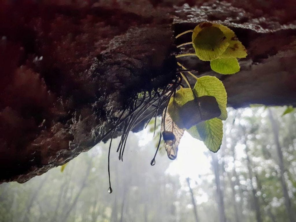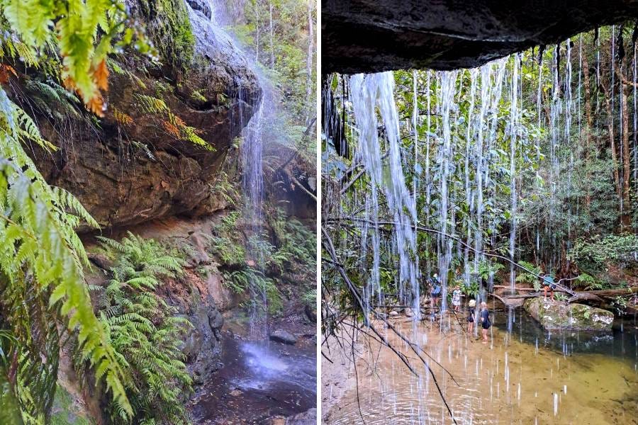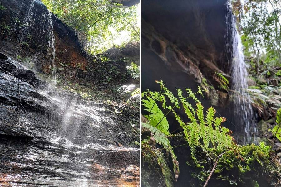 A cool shower from a hanging swamp near Adelina Falls, Lawson