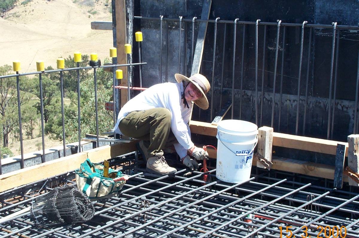 Tillie tying steel for the roof (Photo: supplied)
