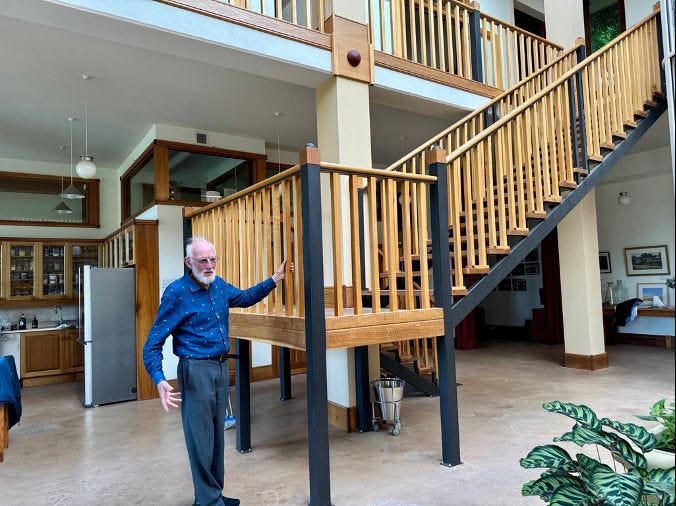 A view of the atrium letting in light through the stairs Hans built. (Photo: Lis Bastian)