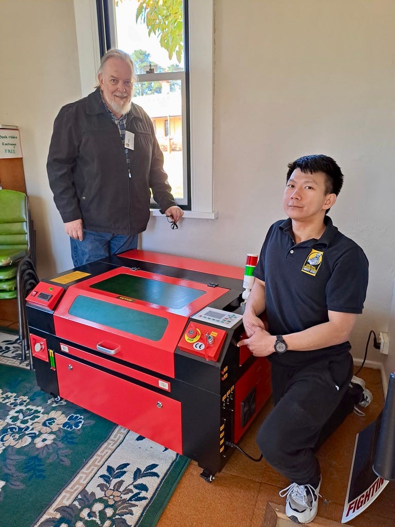 Heri and Geoff at the new laser engraver