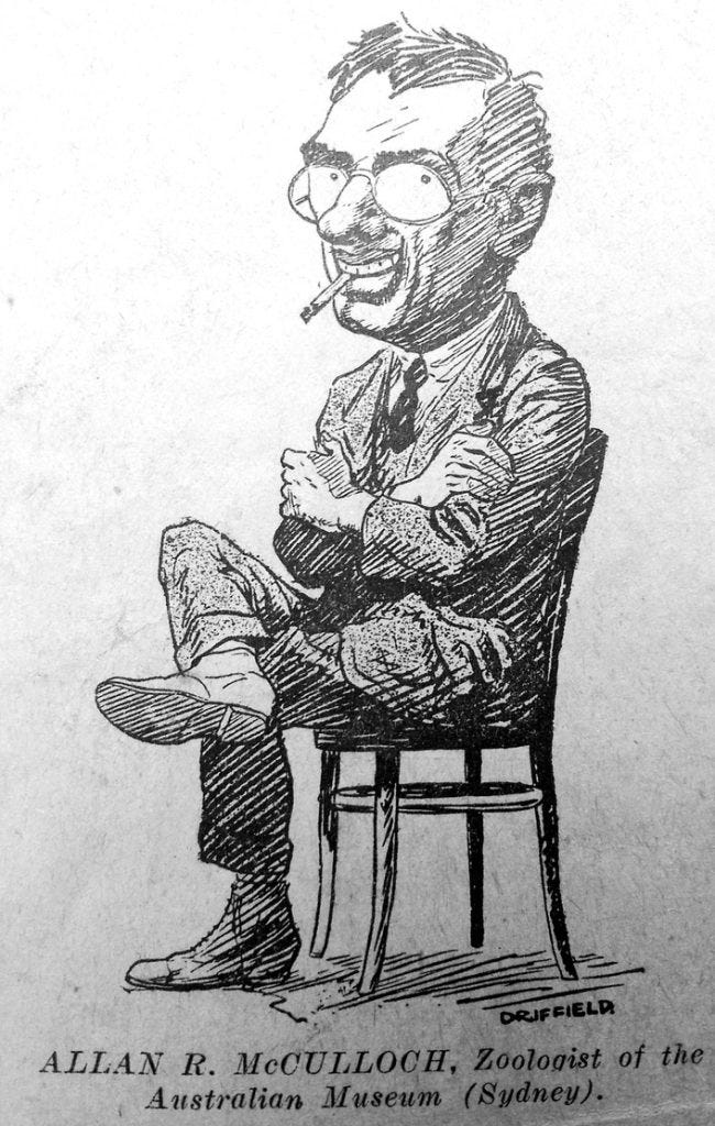 Writer and ecologist Brendan Atkins came across McCulloch (1885-1925) while also an employee at the Australian Museum, editing the museum’s Explore magazine.