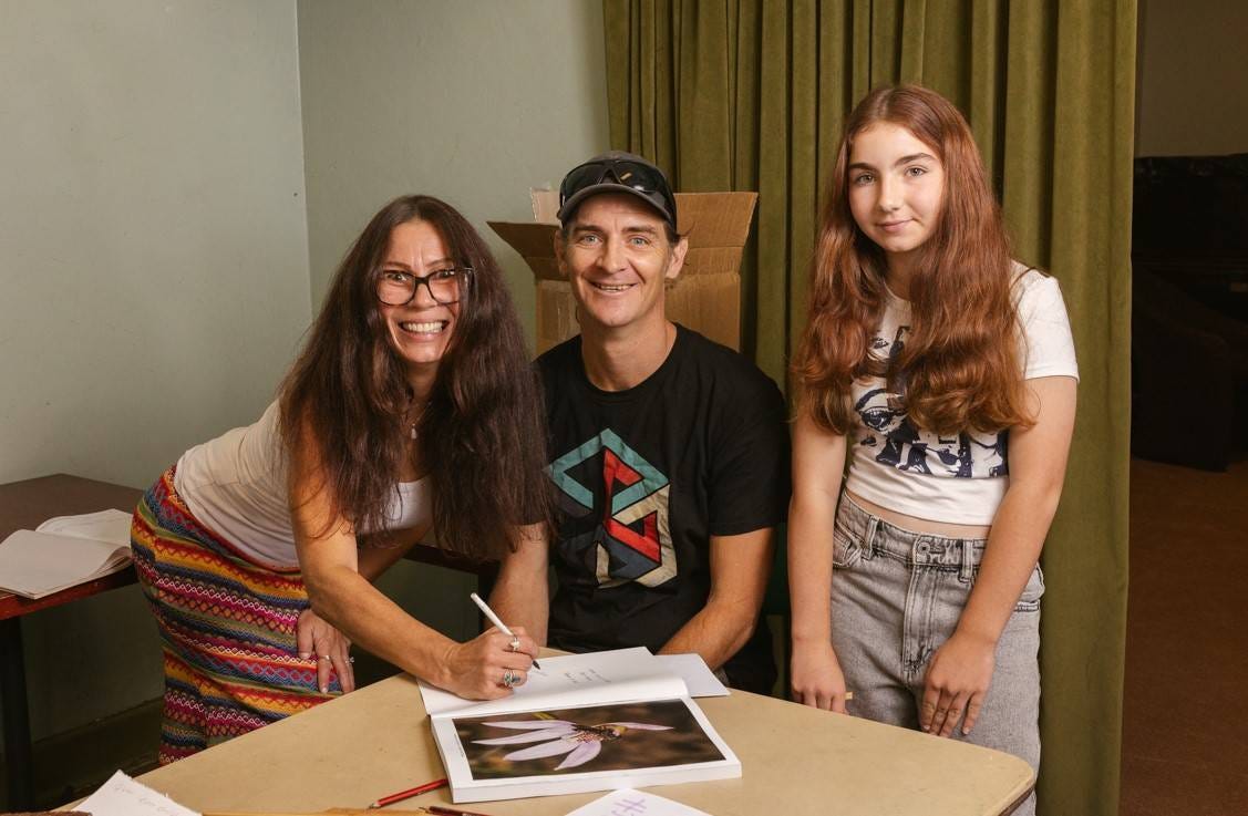 Sabine, Ben and their daughter Arabella signing books at All About Orchids (Maja Baska)