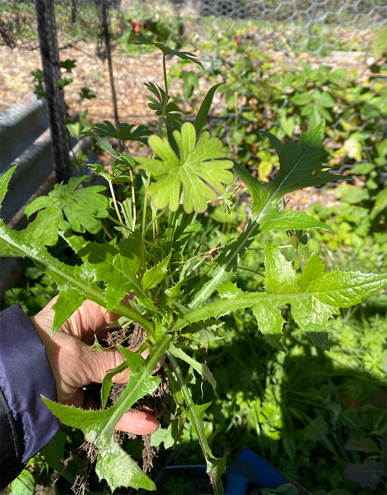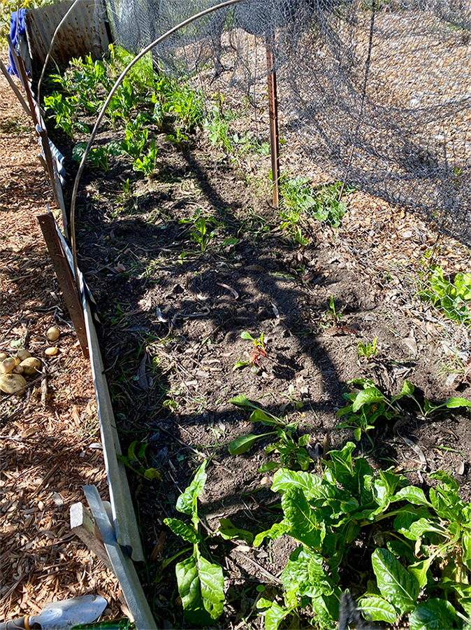 We have so many self-seeded silverbeet now that we’re able to transplant them into other beds. One of the problems with weeds is they can be so vigorous that they don’t allow the seeds you want to grow to germinate. On Sunday we weeded around our silverbeets to allow more of the seedbank around them to germinate … we know there’s lots in there!