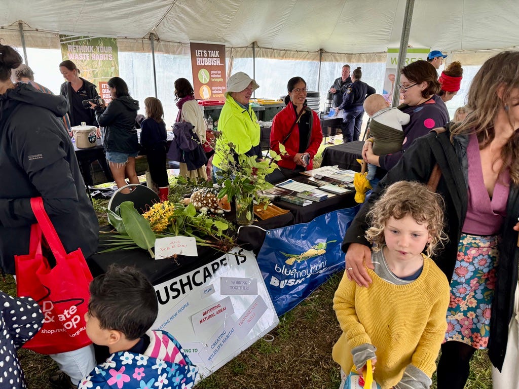 For those with an interest in volunteering, representatives from Blue Mountains Conservation Society, Blue Mountains World Heritage Institute, Blue Mountains Wildplant Rescue Service, WIRES, Mid Mountains Seedsavers, Blackheath Community Farm, Permaculture Blue Mountains, Blackheath Art Society, Blue Mountains Parents for Climate, Resilient Blue Mountains, South Katoomba RFS and Blue Mountains Bushcare were available for a friendly chat. The RFS was also at hand to provide tips on fire safety.
