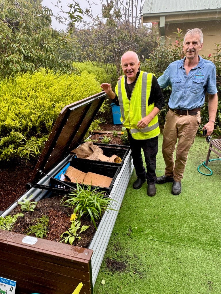 ‘Off-grid Chippendale Sustainable House guy’, Michael Mobbs installed a ‘Cool Seat’ at the Precinct with Ian Collins of WaterUps. A Cool Seat, as Mobbs put it, is “a seat, garden bed and compost in one.”