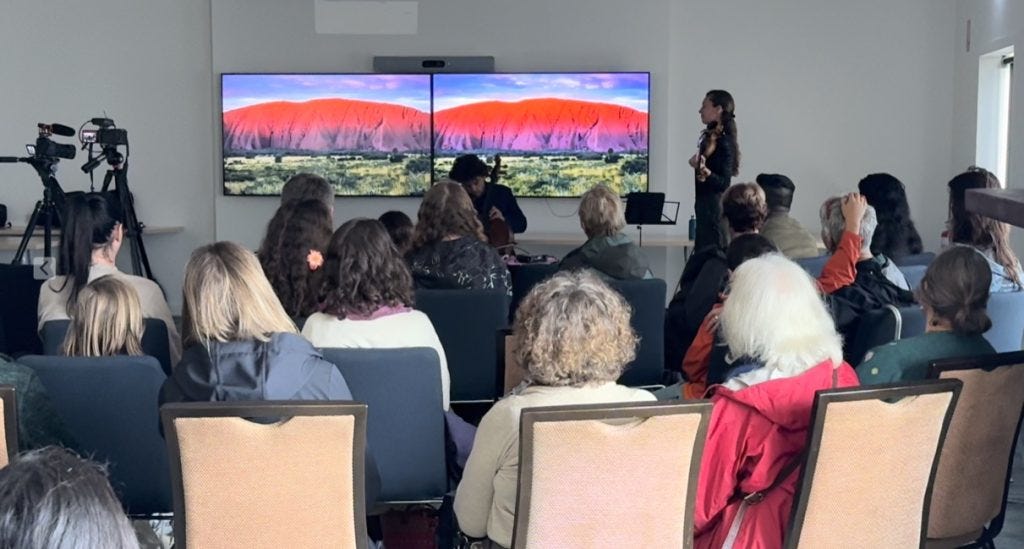 Chris Tobin and Kelsie King. Their ‘Welcome to Country’ encourages us to deepen our relationship to the land and help preserve it for future generations. (Photo: Linda Moon)