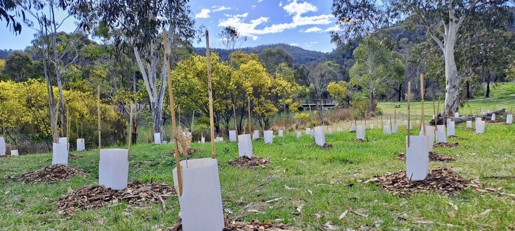 Actions like these not only look good but improve environmental health and moderate the extremes of Lithgow’s climate. Bradshaw’s research indicates deforestation accelerates climate change in two ways: clearing releases carbon into the atmosphere and increases land surface heat as the cooling shade of the canopy is lost.