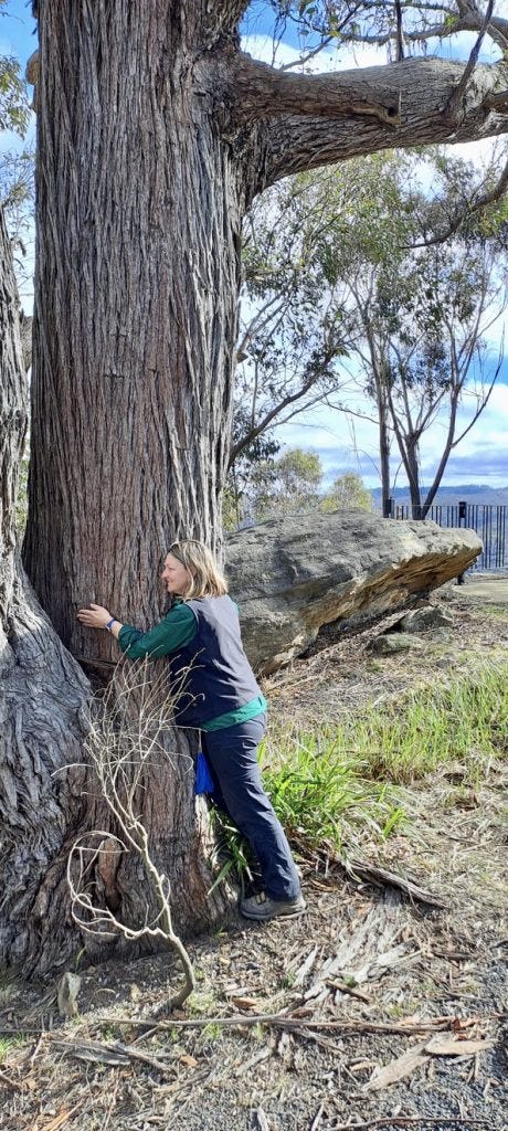 I hold these sights and sounds of Lithgow in my memory. Today, however, I smell the honeyed scent of sunshine wattle and hear the rattle of leaves as a pre-Spring gust brushes the eucalypt that towers over me. I am hopeful that if someone recreates this story in another 120 years they will be able to place themselves by landmarking enormous trees. I hope they find the large Blaxland’s Stringybark on the edge of Bracey Lookout and stop for a moment to wonder; to see, to hear, to smell and to feel. I hope they try to give it a hug, feel the rough graininess of the bark and smell the embedded mustiness of past rain as wattlebirds chortle overhead.
