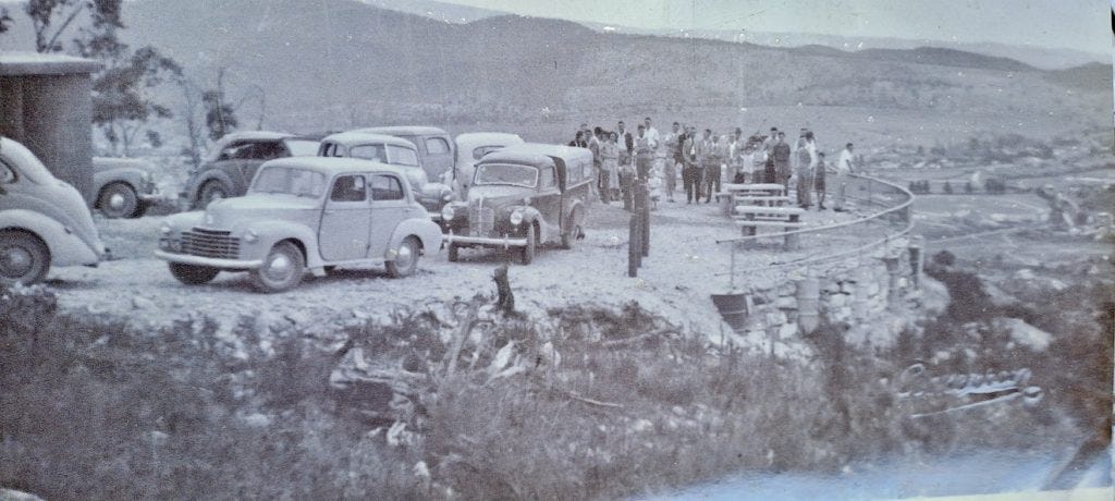 The photo below shows the absence of trees at the opening of Bracey Lookout in 1953. The photo to the right is taken in August 2023. The two eucalypts in the photo on the right are less than seventy years old. They are barely ‘teenagers’. Imagine how tall and wide they will be in the future.