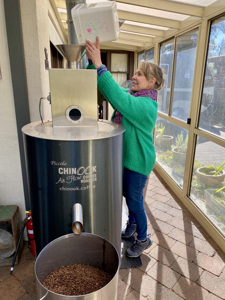 Libby roasting the coffee for Roasters with Altitude at Evans Lookout Rd (Lis Bastian)