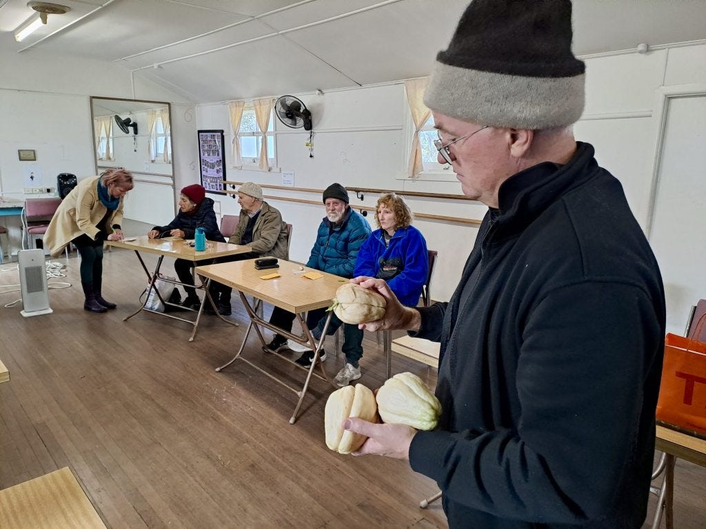 Organiser Lloyd Sharp giving tips for growing Jerusalem artichoke (Belle Butler)