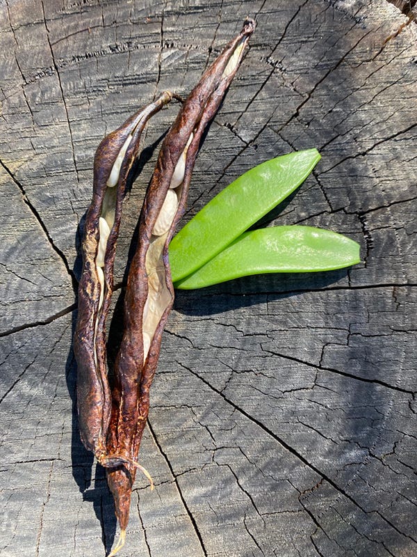 Blue Lake Bean seeds and our first two Mammoth Melting Snowpeas