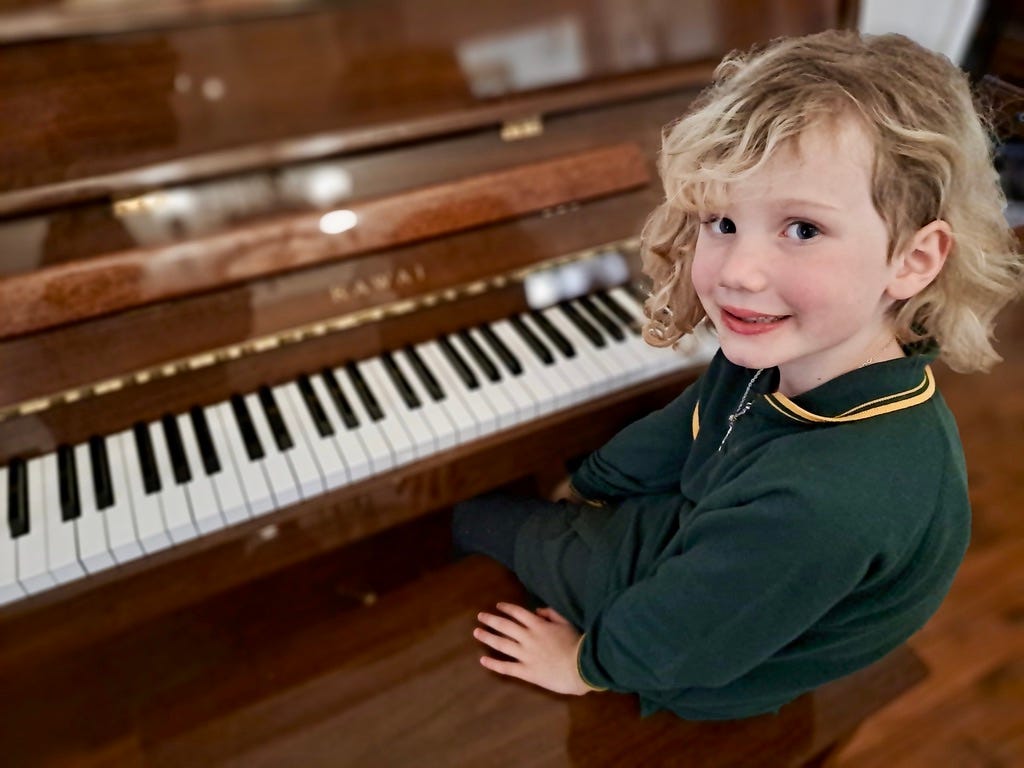 Belle’s daughter Nahla at the ‘new’ piano (Belle Butler)